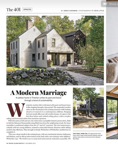 A MODERN MARRIAGE: A SALTBOX HOME IN TIVERTON UNITES ITS PAST AND FUTURE THROUGH A BOND OF SUSTAINABILITY.